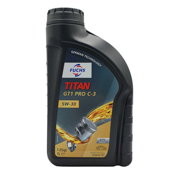 FUCHS TITAN GT1 PRO C3 5W-30 XTL е висококачествено синтетично моторно масло, разработено с иновативната XTL® технология. Тази технология осигурява отлична производителност при широк температурен диапазон, като гарантира бързо смазване при ниски температури и стабилност при високи натоварвания.Подходящо е за съвременни бензинови и дизелови двигатели, включително такива с турбокомпресори и системи за третиране на отработените газове (DPF).