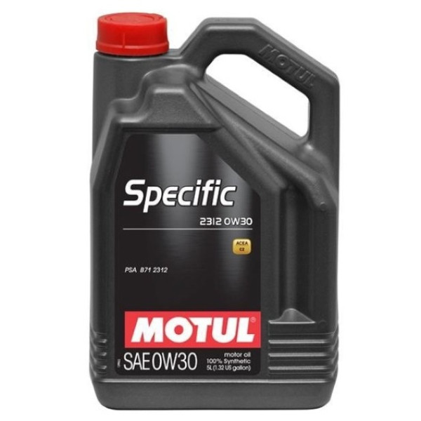 MOTUL Specific 2312 0W-30 е 100% синтетично моторно масло, разработено специално за модерни дизелови BlueHDi двигатели на Peugeot, Citroën и Opel, оборудвани със SCR система (селективна каталитична редукция) и DPF (филтър за твърди частици). Одобрено по стандарта PSA B71 2312, маслото гарантира намалени емисии, по-дълъг живот на системите за третиране на изгорели газове и икономия на гориво.